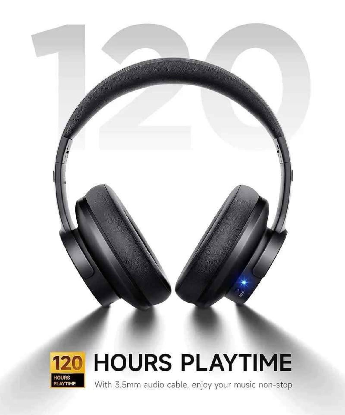 High-quality Bluetooth headphones with powerful 40mm drivers, 3 EQ modes, up to 120 hours playtime, and a comfortable foldable design.